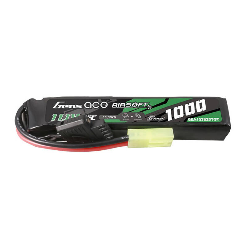 Akumulator Gens ace G-Tech został stworzony z myślą o zapewnieniu optymalnego zasilania dla replik airsoftowych. Dzięki pojemności 1000 mAh i napięciu 11,1 V gwarantuje doskonałą wydajność w nawet najbardziej wymagających sytuacjach. Jego kompaktowe wymiary (105 x 19 x 16 mm) sprawiają, że idealnie nadaje się do użytku w miejscach, gdzie przestrzeń jest ograniczona, na przykład w kolbach typu LE stosowanych w replikach takich jak M4. Ponadto złącze Tamiya zapewnia łatwe i bezpieczne połączenie z większością dostępnych na rynku modeli airsoft.