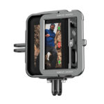 Dzięki przemyślanej konstrukcji obudowa pozwala wygodnie korzystać z umieszczonej w niej kamery i nie ogranicza Twoich możliwości. Jeden z boków akcesorium da się otworzyć, co sprawia, że bez problemu podłączysz urządzenie do ładowania. Masz także wystarczająco dużo miejsca, aby bez przeszkód montować obiektywy Max lens lub filtry ND. Możesz też w każdej chwili przełączyć się na nagrywanie w pionie – wystarczy przymocować do obudowy wchodzący w skład zestawu adapter.