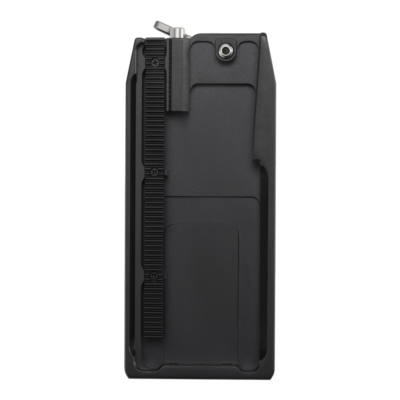 Dolna płytka szybkiego montażu pozwala na precyzyjne ustawienie kamery na gimbalu i współpracuje z jego pokrętłem do regulacji osi tilt. Znaczniki po obu stronach oraz ząbkowany rowek na spodzie umożliwiają dokładne dostosowanie pozycji – szczególnie przy zmianie korpusu lub obiektywu. Dzięki temu konfiguracja sprzętu staje się szybka i precyzyjna, a przełączanie kamery między statywem a stabilizatorem przebiega sprawnie i bezproblemowo. Akcesorium jest kompatybilne z modelami DJI RS 5 oraz DJI RS 4.