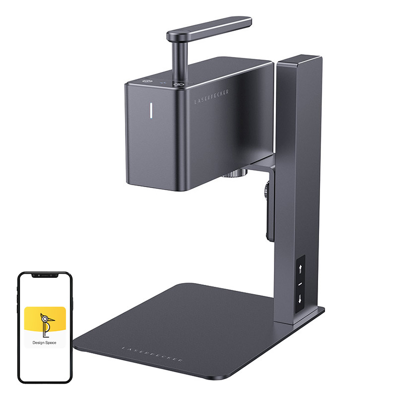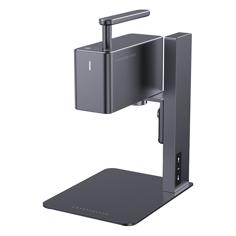 Mimo swoich niewielkich rozmiarów model LaserPecker 2 jest wyjątkowo wydajny. Jego kompaktowa konstrukcja ułatwia przenoszenie i pozwala na grawerowanie w miejscach, do których trudno dotrzeć innymi urządzeniami. Elektryczna podstawka to kolejny atut grawerki. Umożliwia ona precyzyjną regulację ogniskowej za pomocą bocznych przycisków, co zwiększa dokładność i jakość grawerowania. Dodatkowo możliwość utrzymania lasera pod wybranym kątem pozwala na optymalne dostosowanie do grawerowanej powierzchni.