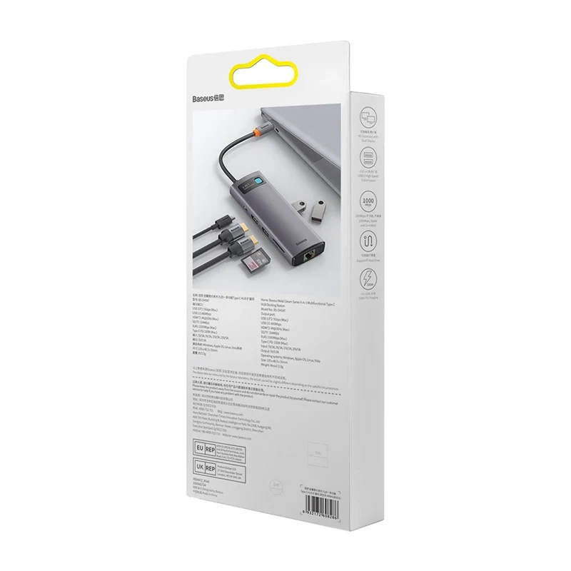 Szukasz niezawodnego narzędzia, które pozwoli Ci pracować bardziej efektywnie? Hub 9w1 Baseus Metal Gleam Series to idealna odpowiedź na Twoje potrzeby! Aż 9 dostępnych portów, możliwość szybkiego ładowania urządzeń, obsługa rozdzielczości 4K HD i błyskawiczna transmisja danych z prędkością do 5 Gbps – sprawdź, co jeszcze zyskujesz! Produkt jest przy tym niezwykle wytrzymały, a dzięki kompaktowym rozmiarom możesz mieć go zawsze przy sobie.