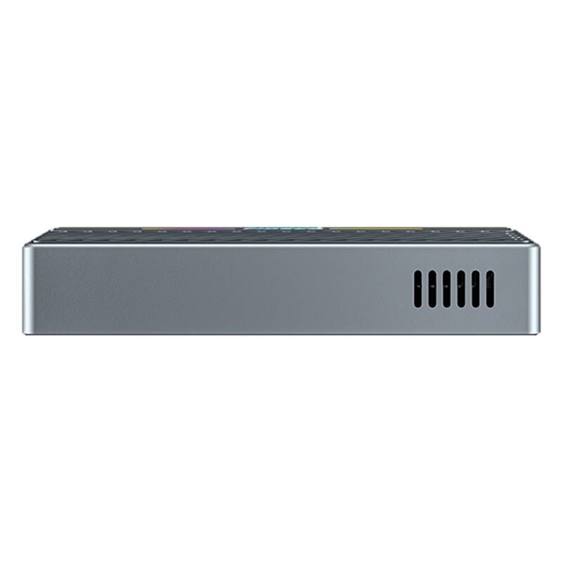 Obudowa FIDECO MT402 oferuje kolorowe efekty świetlne RGB, które informują o stanie pracy urządzenia. Podczas oczekiwania widoczne jest pulsujące światło, a w trakcie odczytu i zapisu – płynący strumień RGB, który nadaje urządzeniu unikalny, nowoczesny charakter.