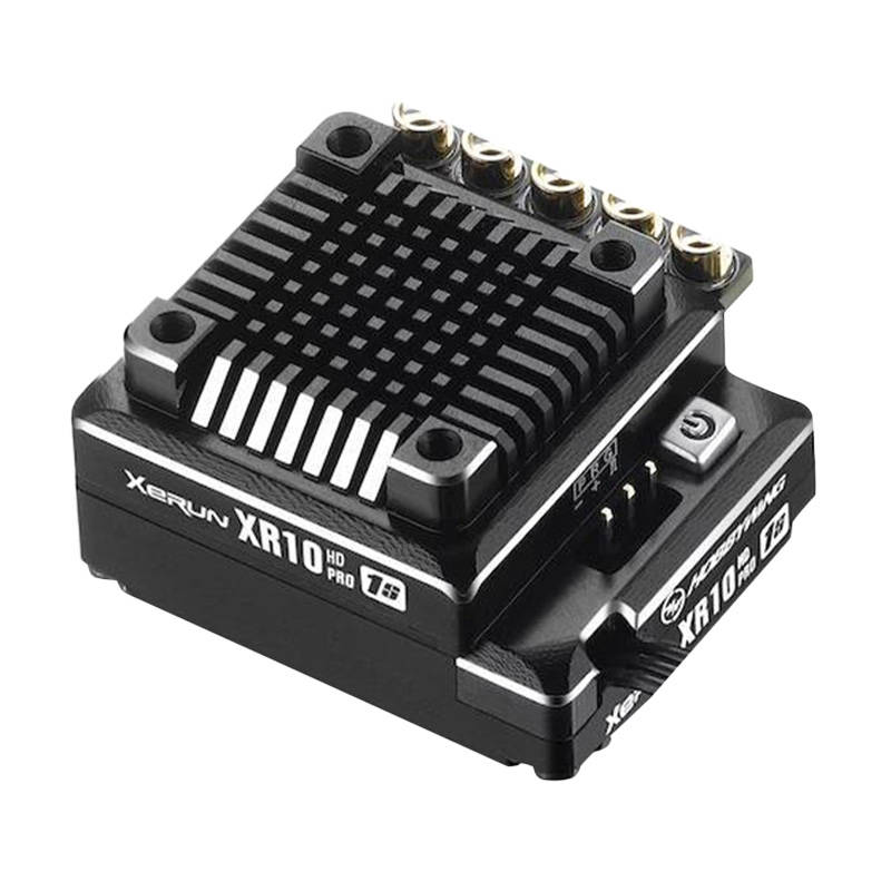 Hobbywing XeRun XR10 Pro 1S Heavy Duty został wyposażony w przełącznik BEC, który może generować natężenie/napięcie do 6A/6V i zasilać różnego rodzaju serwy bez konieczności podłączania dodatkowej baterii odbiornika. Ponadto elektroniczny przełącznik o żywotności ponad 50000 cykli został umieszczony w odpornej na wodę, kurz i wstrząsy konstrukcji. Natomiast moduł kondensatora pozwala zaoszczędzić miejsce i zakrywa okablowanie.