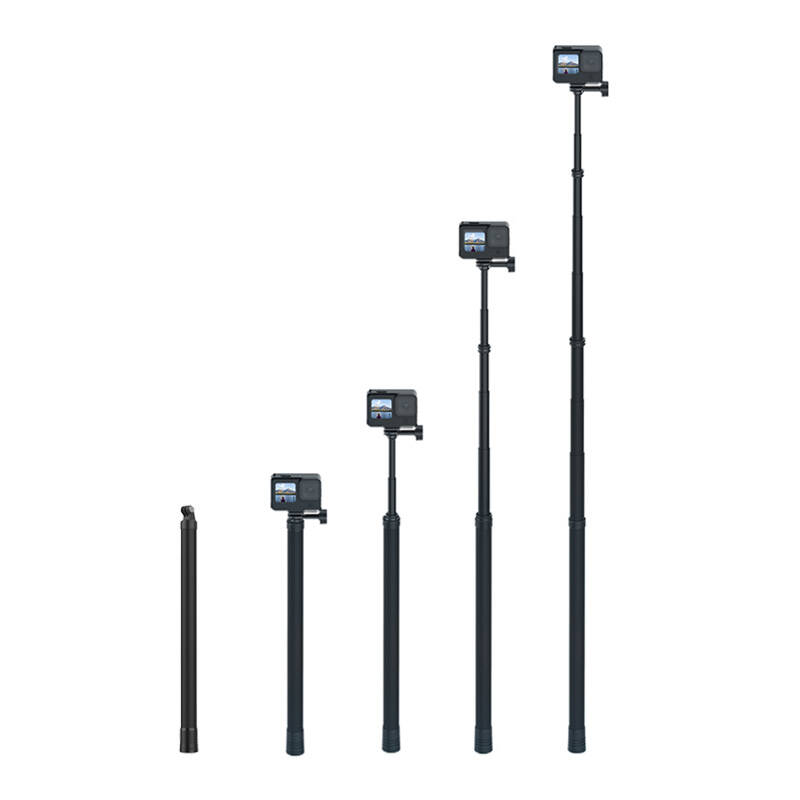 Twórz fantastyczne selfie, zdjęcia grupowe i ujęcia z niecodziennych perspektyw. Pomoże Ci w tym selfie stick GP-MNP-270-02 marki TELESIN! Akcesorium umożliwia 6-stopniową regulację długości w zakresie od 40 cm do nawet 2,7 m. Możesz więc bez problemu dostosować je do swoich potrzeb! Co więcej, na spodzie produktu znajduje się otwór 1/4”, który pozwala zamontować go na statywie. Selfie stick jest też wyposażony w odłączane adaptery i śrubę 1/4”, dzięki czemu jest kompatybilny z wieloma modelami kamer sportowych znanych marek, takich jak DJI, Insta360 czy GoPro. Do jego wykonania zastosowano wysokiej włókno węglowe, które jest lekkie, a zarazem solidne i wytrzymałe.