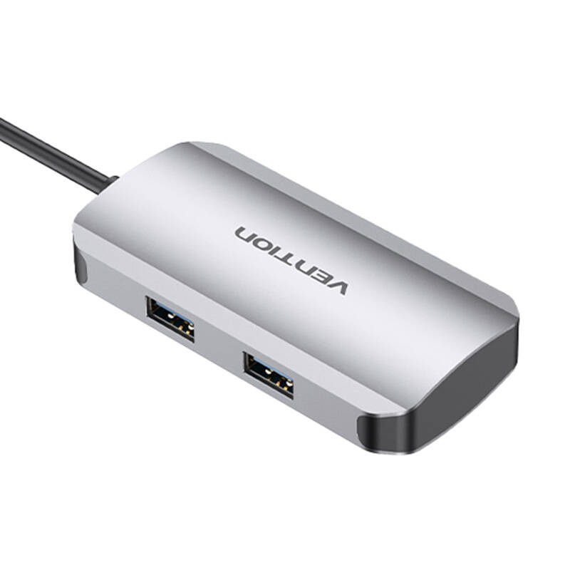 Przesyłaj pliki, ładuj urządzenie i korzystaj z urządzeń zewnętrznych za pomocą huba Vention. TNDHB oferuje 3 porty USB3.0 oraz 2 porty USB-C. Hub pozwala szybko ładować sprzęt dzięki PD 100 W oraz przesyłać dane z prędkością 5 Gbps. Dodatkowo zapewnia niezawodną pracę bez zakłóceń dzięki wbudowanym chipom. Aluminiowe wykończenie chroni produkt przed przegrzaniem, a lekka i kompaktowa konstrukcja ułatwia transport i przechowywanie.