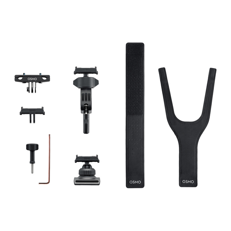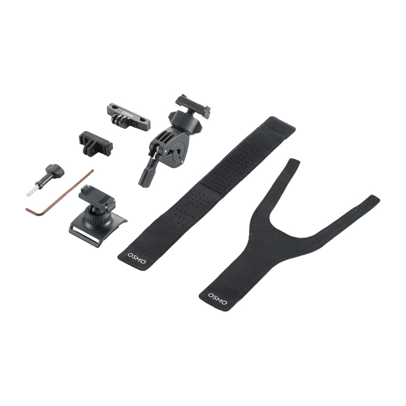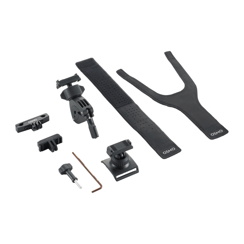 Zestaw akcesoriów rowerowych Osmo pozwala rejestrować dynamiczne ujęcia z każdej perspektywy – z kierownicy, spod siodełka, a nawet z nadgarstka. W opakowaniu znajdziesz dwukierunkowy adapter z systemem szybkiego montażu, który umożliwia sprawną zmianę położenia kamery, a także opaskę na nadgarstek 360°, mały uchwyt na kierownicę, mocowanie do siodełka, śrubę blokującą i klucz imbusowy. Dzięki przemyślanej konstrukcji elementów możesz wygodnie dopasować konfigurację do stylu jazdy i sytuacji na trasie.